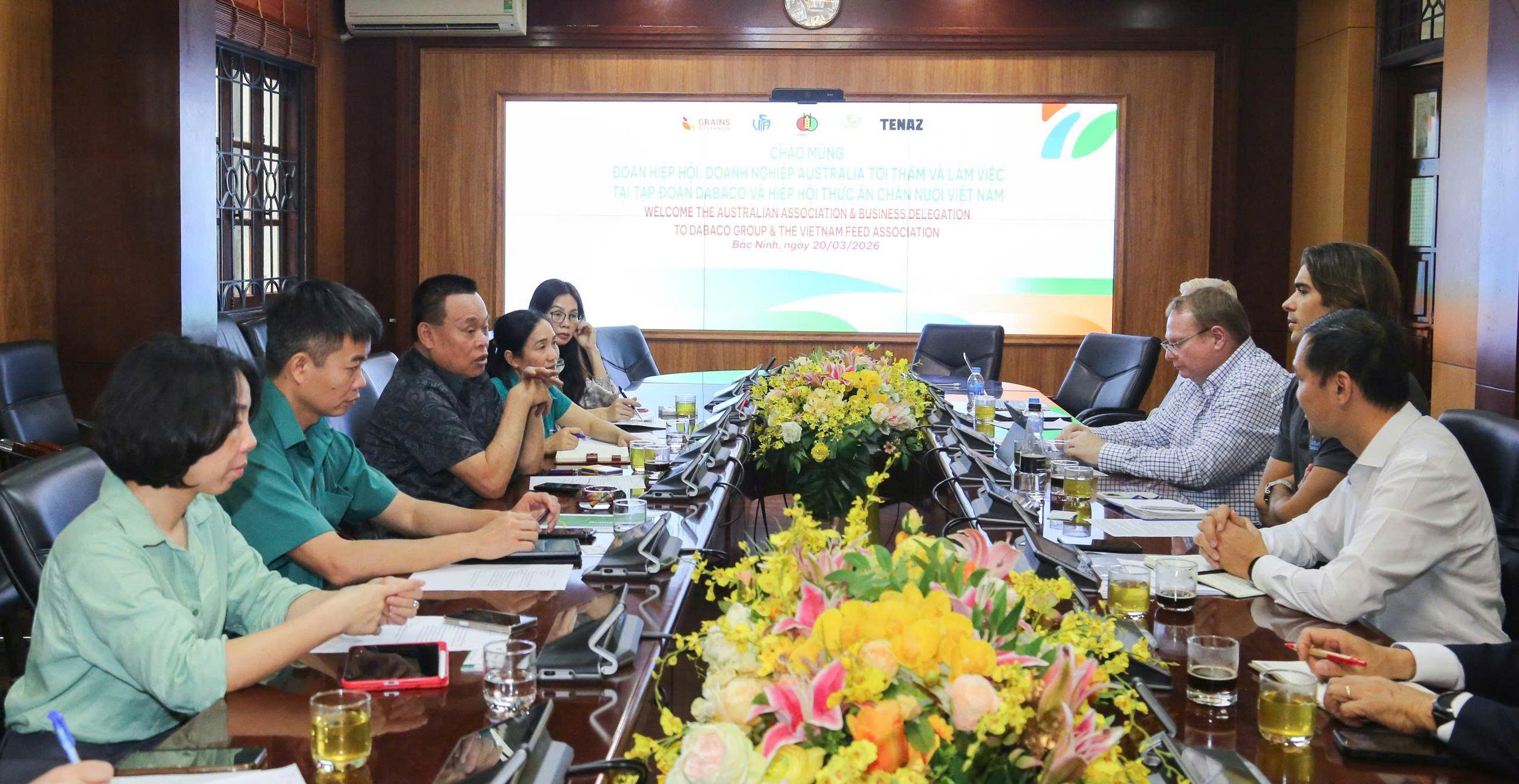 Sáng ngày 20/3, tại Trụ sở Tập đoàn Dabaco Việt Nam, Đoàn doanh nghiệp nông nghiệp Australia tới thăm và làm việc với Tập đoàn Dabaco Việt Nam và Hiệp hội Thức ăn chăn nuôi Việt Nam (VFA) nhằm trao đổi cơ hội hợp tác trong lĩnh vực cung ứng nguyên liệu thức ăn chăn nuôi.