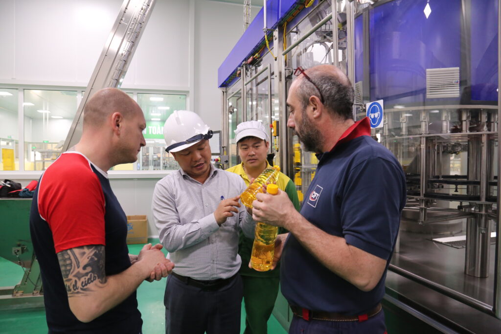 Lãnh đạo Nhà máy trao đổi với các chuyên gia về chất lượng sản phẩm.