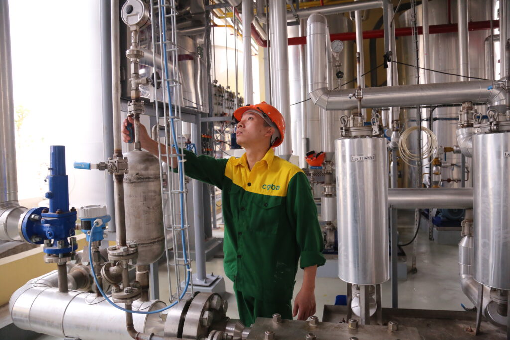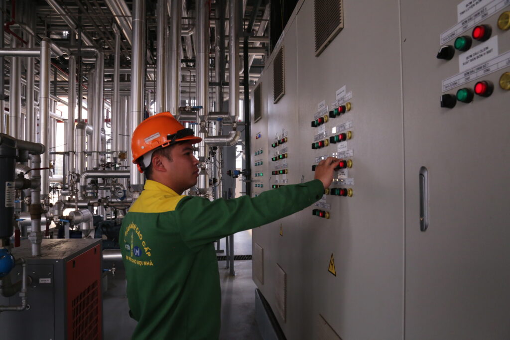 Công nhân Nhà máy vận hành hệ thống tinh luyện.